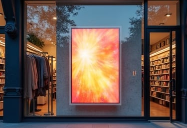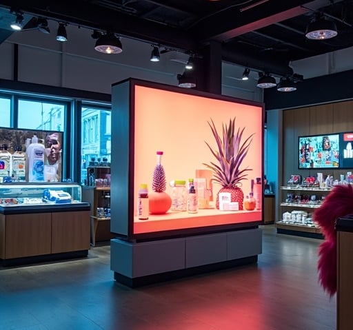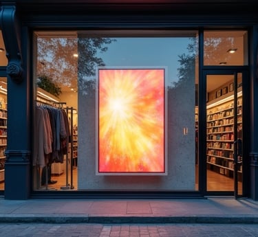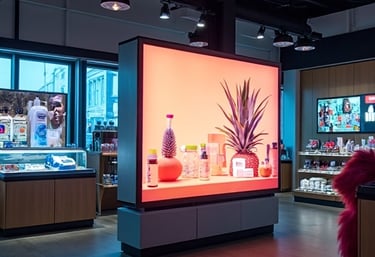 Add movement and light to your shop interior. Show promotions, product videos, or branding that brings your displays to life. Ideal for display tables, shelves, or internal glass.