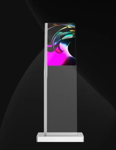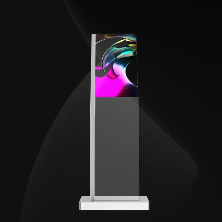 Freestanding and plug-and-play. Great for exhibitions, lobbies, and retail.